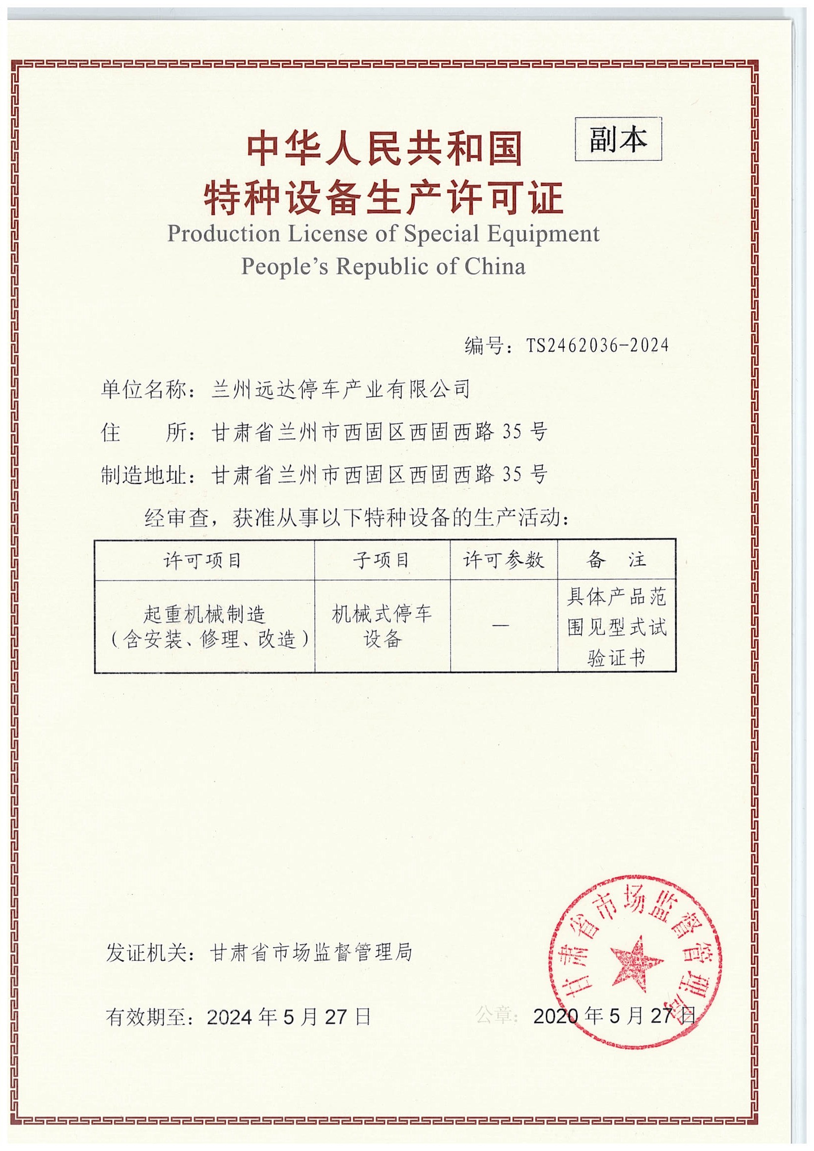 生產(chǎn)許可證書